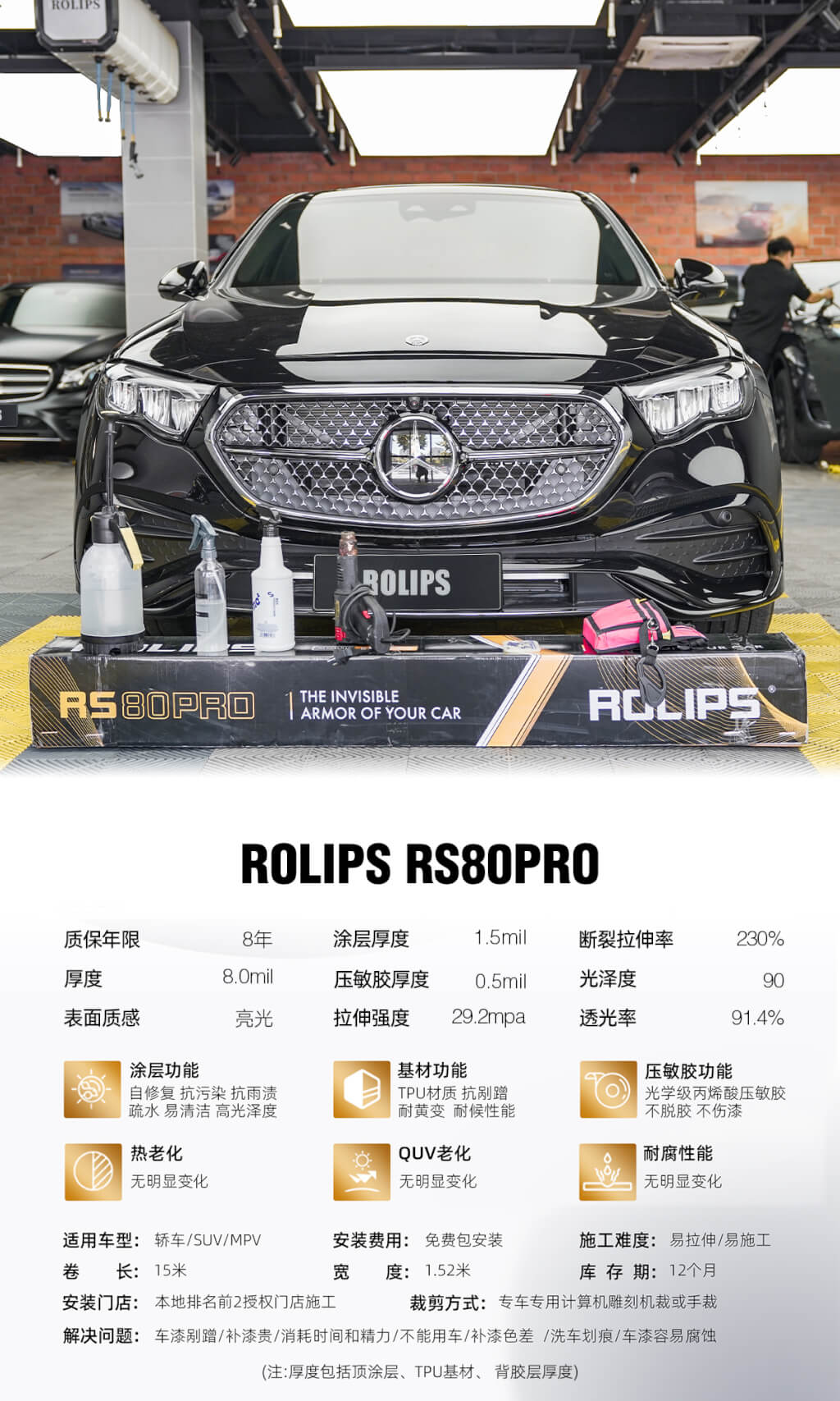新款奔馳E裝貼羅利普斯rs80 pro隱形車衣施工過(guò)程